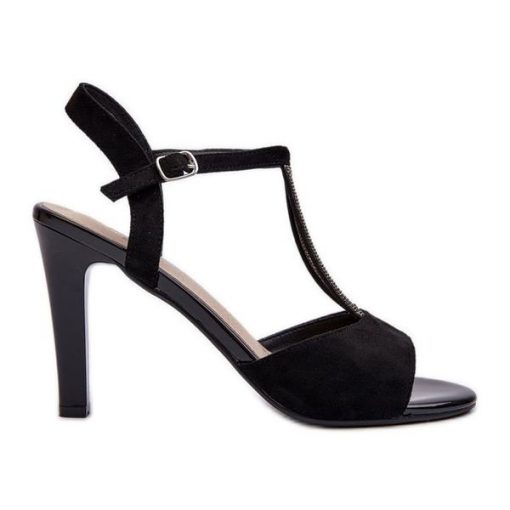 Sandały Damskie Na Szpilce Ze Zdobionymi Paskami Sergio Leone SK924 Czarne