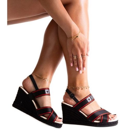 Czarne sandały na koturnie Big Star LL274881
