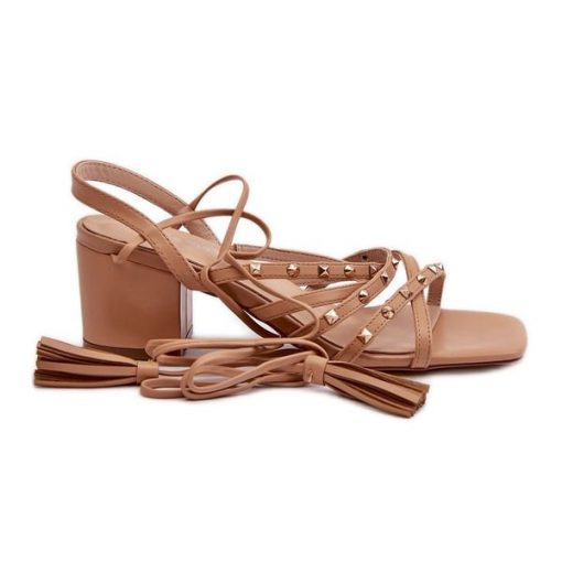 Wiązane Sandały Na Niskim Obcasie Ozdobione Ćwiekami Camel Chrisele beżowy