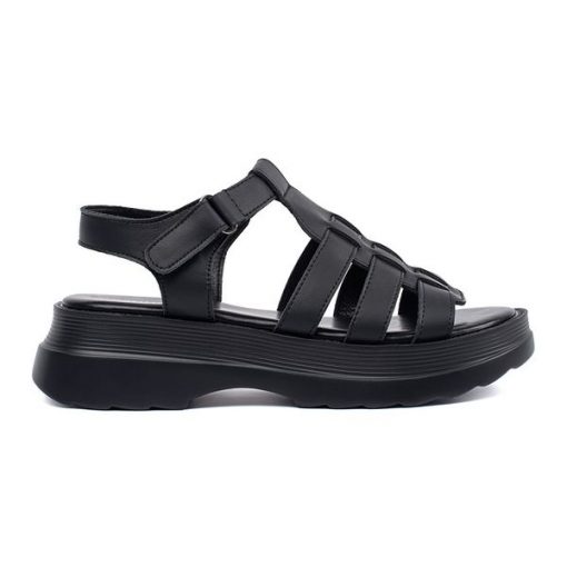Goodin Czarne sandały na platformie skórzane