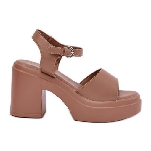 Sandały Damskie Na Masywnym Słupku I Platformie Z Eko Skóry Ciemnobeżowe beżowy