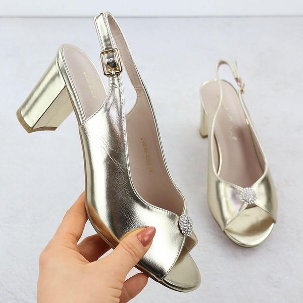 Sandały damskie na słupku metaliczne złote Jezzi 6985