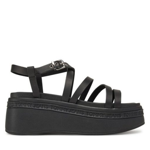Sandały Tommy Jeans Tjw Wedgy Strappy Sandal EN0EN02756 Czarny