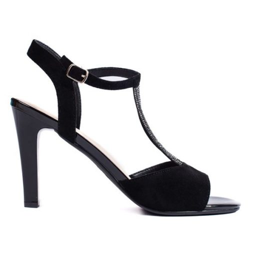 Zamszowe eleganckie czarne sandały na szpilce Sergio Leone