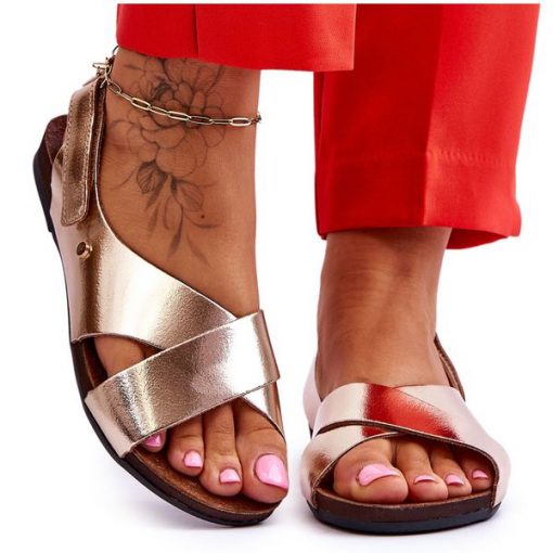 Lemar Skórzane Sandały Na Rzep Złote Addison złoty