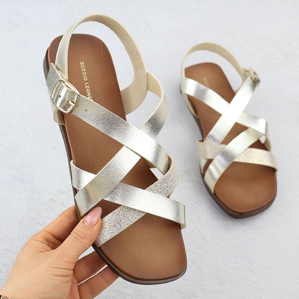 Sandały damskie płaskie rzymianki złote Sergio Leone SK088H