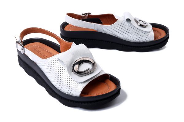 Eleganckie sandały z perforowaną, skórzaną cholewką i modnymi złotymi dodatkami. Skórzana wkładka i sprzączka zapewniają komfort oraz idealne dopasowanie.