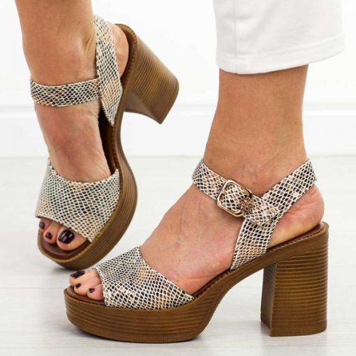 Beżowe wąż sandały damskie na słupku M.Daszyński 24146-2