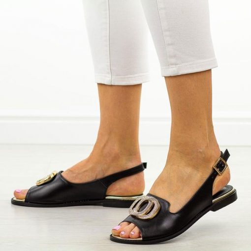 Czarne skórzane Polskie sandały damskie Deoni D533
