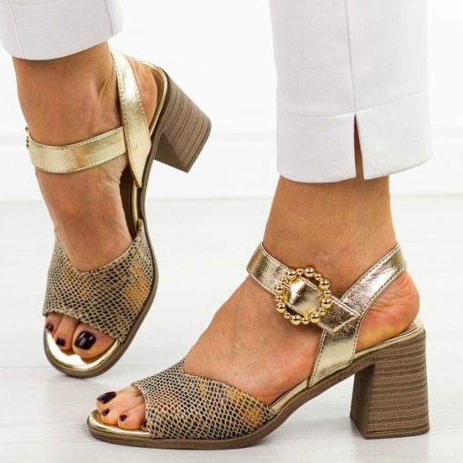 Złote wąż sandały damskie na obcasie M.Daszyński 24125-4