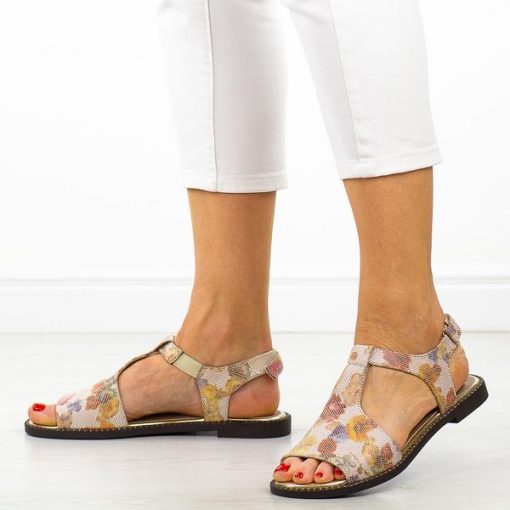 Różowe kwiaty sandały damskie M.Daszyński 24148-1