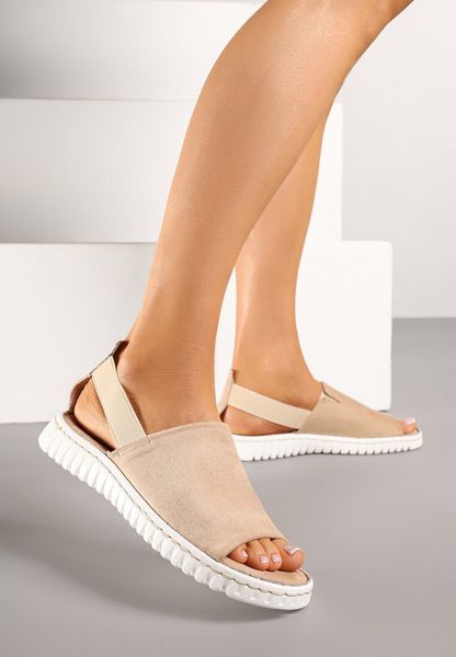 Beżowe Sandały Vices z Imitacji Zamszu z Elastycznym Paskiem Folalise