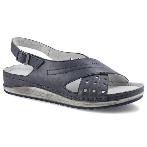 Granatowe Sandały Pollonus Damskie Skórzane Obuwie
