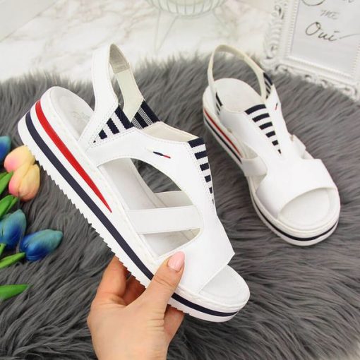 Komfortowe sandały damskie wsuwane na koturnie białe Rieker V02Y5-80