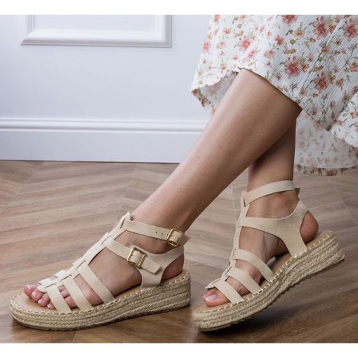 Beżowe sandały espadryle na niskiej platformie beżowy