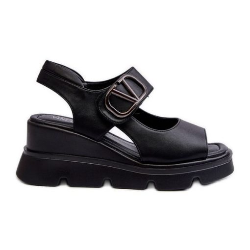 Vinceza Sandały Damskie Na Koturnie I Platformie Z Eko Skóry Czarne Triaola