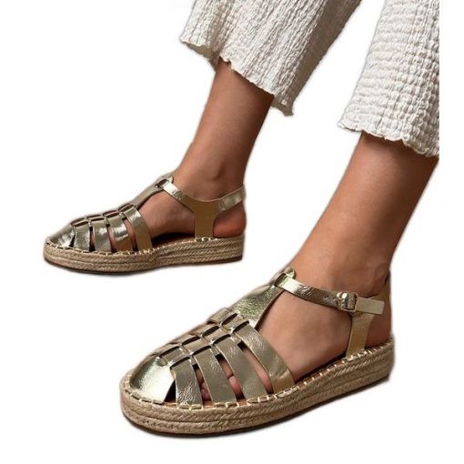 Złote sandały espadryle gladiatorki z ekoskóry złoty