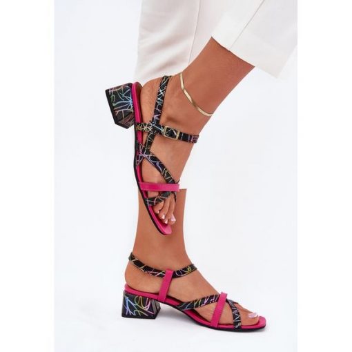 Skórzane Sandały Damskie Na Słupku Z Paskami Maciejka 06959-39 Fuksja różowe