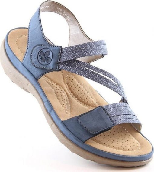 Rieker Komfortowe sandały damskie na rzepy niebieskie Rieker 64870-14 36