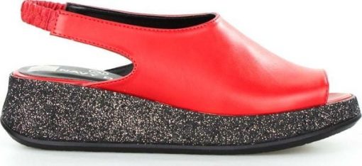 W. Potocki Sandały na brokatowym koturnie z gumką czerwone-37