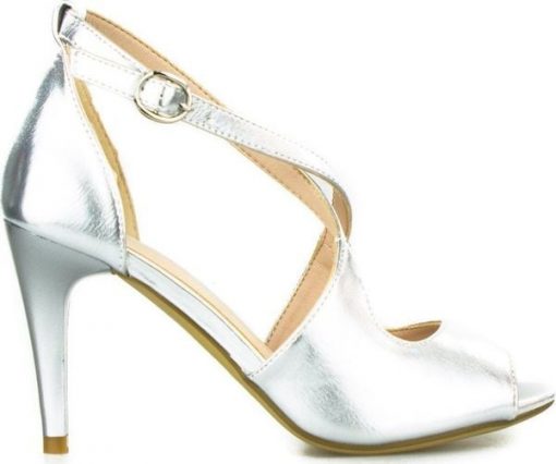 Sergio Leone Sandały na szpilce retro połyskujące srebrne Sergio Leone-37