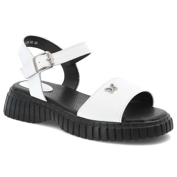 Sandały damskie Filippo, skórzane na płaskim obcasie z ozdobą zapinane sprzączką, białe, DS6811-25-WH