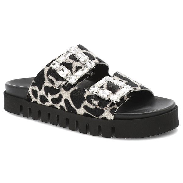 Klapki CHEBELLO – 4688_-516-000PSK-S390 Giraffa to odważna i ultramodna propozycja dla kobiet, które lubią przyciągać spojrzenia, a także podkreślać swój indywidualny styl. Zwierzęcy wzór w połączeniu z efektownymi klamrami ozdobionymi dużymi kryształkami tworzy wyjątkowy duet, który nadaje każdej stylizacji wyrazistości oraz luksusowego charakteru. Miękka wkładka i solidna, grubsza podeszwa z wyrazistym bieżnikiem gwarantują komfort, a zarazem […]