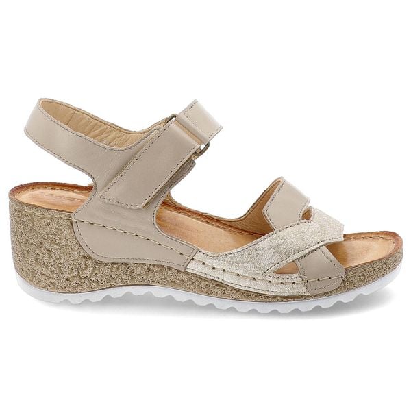 Sandały damskie Wasak, eleganckie skórzane na koturnie na rzepy wygodne, beżowo-złote, 493