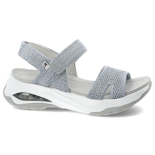 Sandały damskie Rieker, na grubej platformie materiałowe na rzepy sportowe, niebieskie, W3152-10