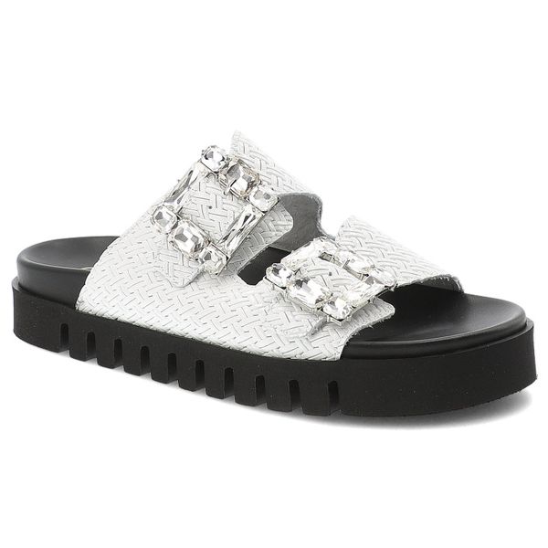 Klapki damskie Chebello, skórzane plecione z ozdobnymi klamrami na grubej podeszwie profilowane, białe, S390-4688