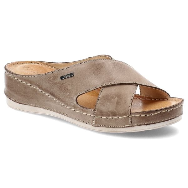 Klapki damskie Wasak, wygodne skórzane na platformie z miękkimi wkładkami, cappuccino, 409