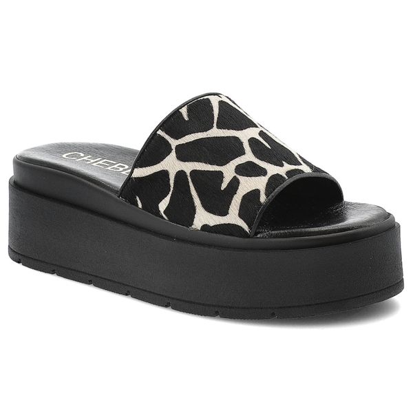 Klapki damskie Chebello, skórzane na wysokiej platformie z miękkimi wkładkami, w motyw żyrafy, 4712-516-002