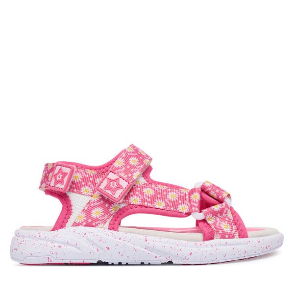 Różowe Płaskie Sandały z Ekoskóry Zapinane na Rzep Ozdobione Klamerkami Ambalia