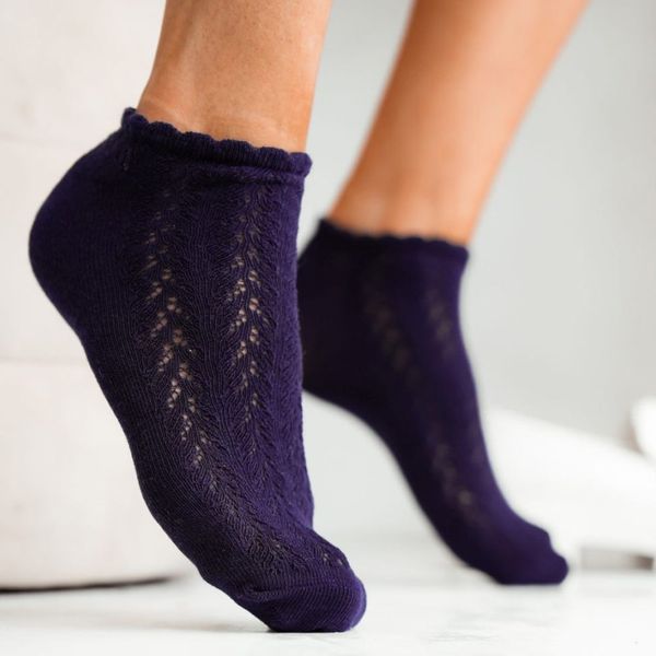 Granatowe ażurowe stopki damskie 861