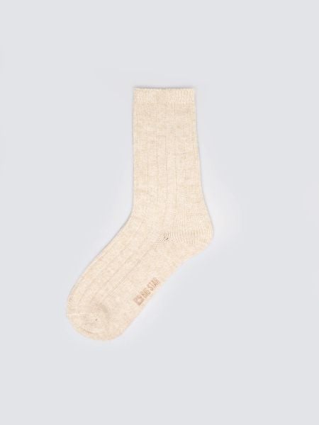 Skarpety damskie prążkowane z dodatkiem wełny kremowe Malena 103