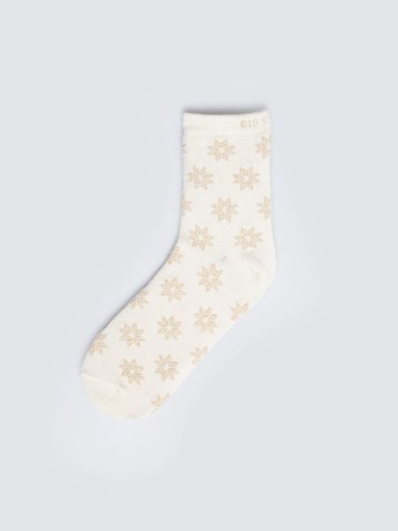 Skarpety damskie długie w metaliczne gwiazdki białe Luria 100