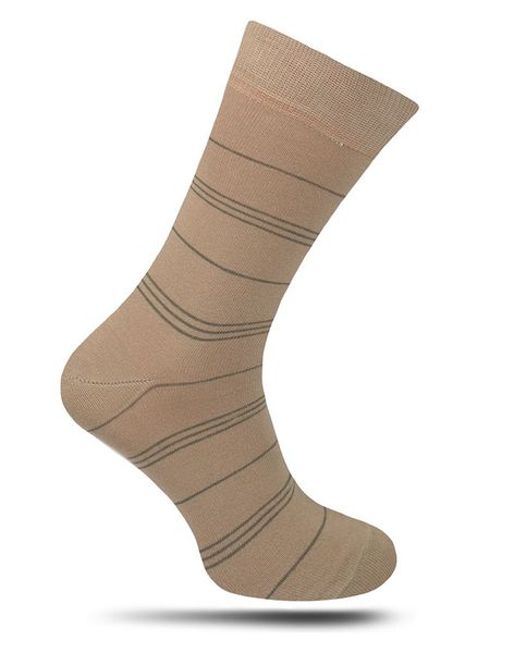 Skarpetki Bawełniane, Beżowe w Paski, Prążki, Casualowe -KINGS- Męskie