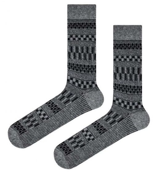 Ciepłe Wełniane Skarpetki Zimowe – Popielate w Czarny, Geometryczny Wzór