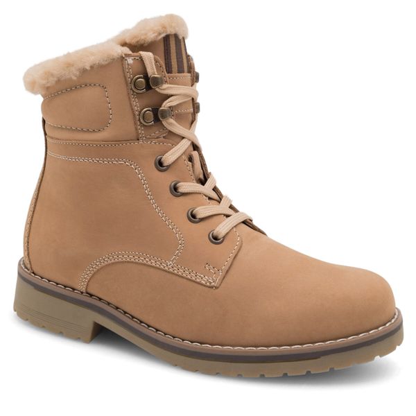 Ciemnobeżowe Botki Trapery na Stabilnej Podeszwie z Protektorem Davikkesa