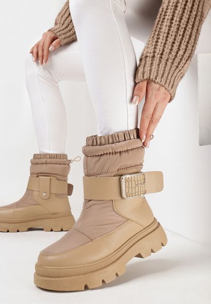 Ciemnobeżowe Śniegowce na Grubej Podeszwie z Protektorem Alodian