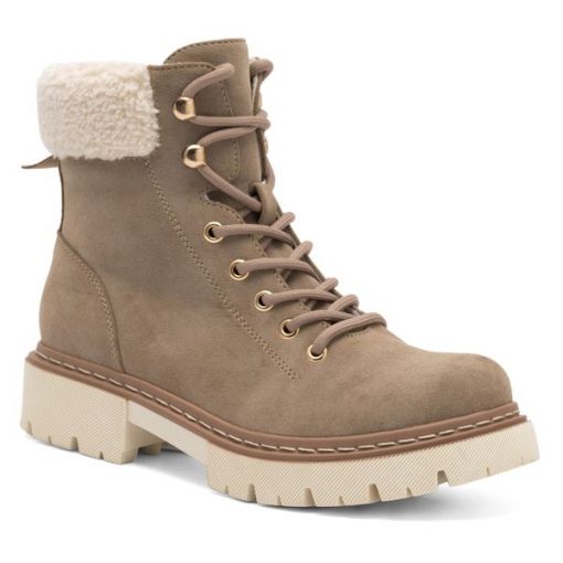 Ciemnobeżowe Botki Typu Trapery Vices na Grubej Tłoczonej Podeszwie Anerrive