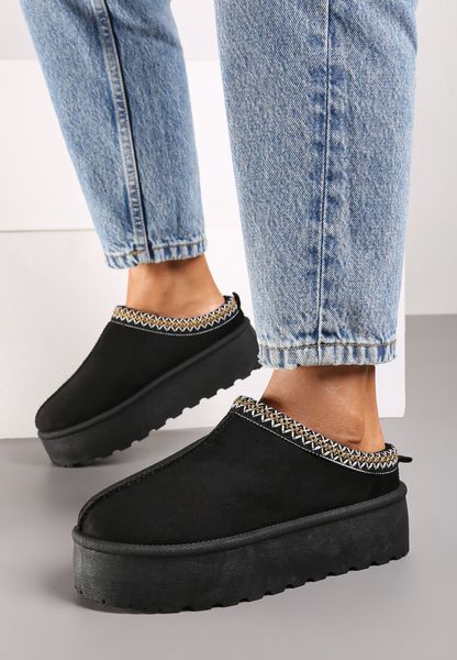 Czarne Śniegowce na Platformie z Niską Cholewką i Haftowanym Wzorem Zivilae