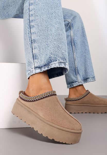 Ciemnobeżowe Niskie Śniegowce na Grubej Tłoczonej Podeszwie Arevire