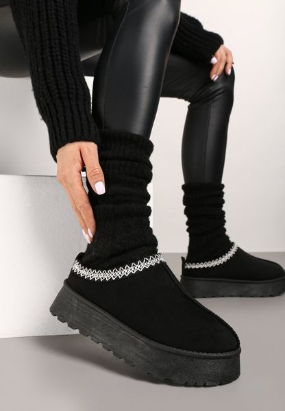 Czarne Wsuwane Śniegowce na Platformie o Niskiej Cholewce Weritana