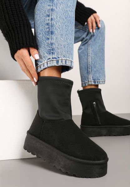 Czarne Śniegowce na Platformie z Elastyczną Cholewką Linnastra