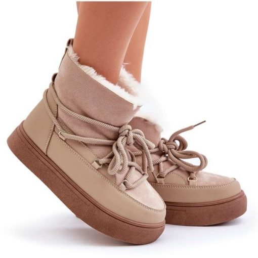 Śniegowce Damskie Na Platformie Ocieplane Futerkiem Beżowe Aziara beżowy
