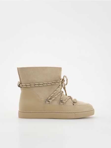 Zamszowe śniegowce ze sznurowaniem – beżowy