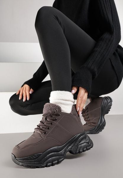 Brązowe Traperki Sneakersy Vices na Grubej Tłoczonej Platformie Typu Traperki Narrise