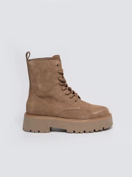 Brązowe Krótkie Śniegowce ze Skóry Naturalnej Ocieplane Futerkiem Riasirae