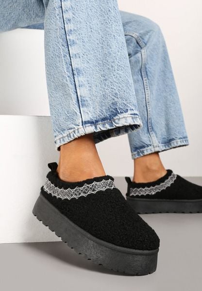 Czarne Śniegowce na Platformie z Niską Cholewką i Haftowanym Wzorem Zivilae